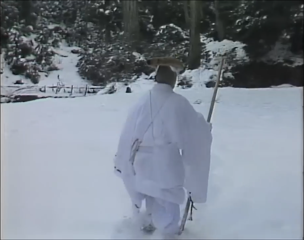 袴と足袋を履き、手甲脚半を付け、白装束を着る。そして蓮華を表す笠をかぶる。これが千日回峰行者、独特の装束である。